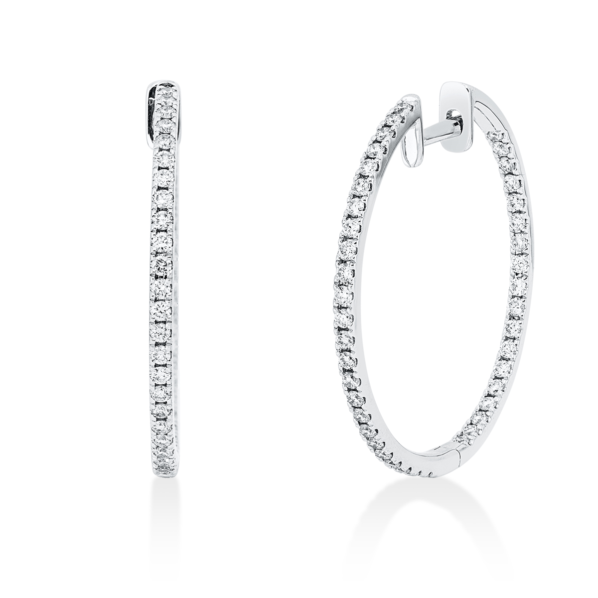 Creolen 14 kt WG, 84 Brillanten 0,72 ct, TW-si, H:25,9 mm, B:26,0 mm, S:1,4 mm