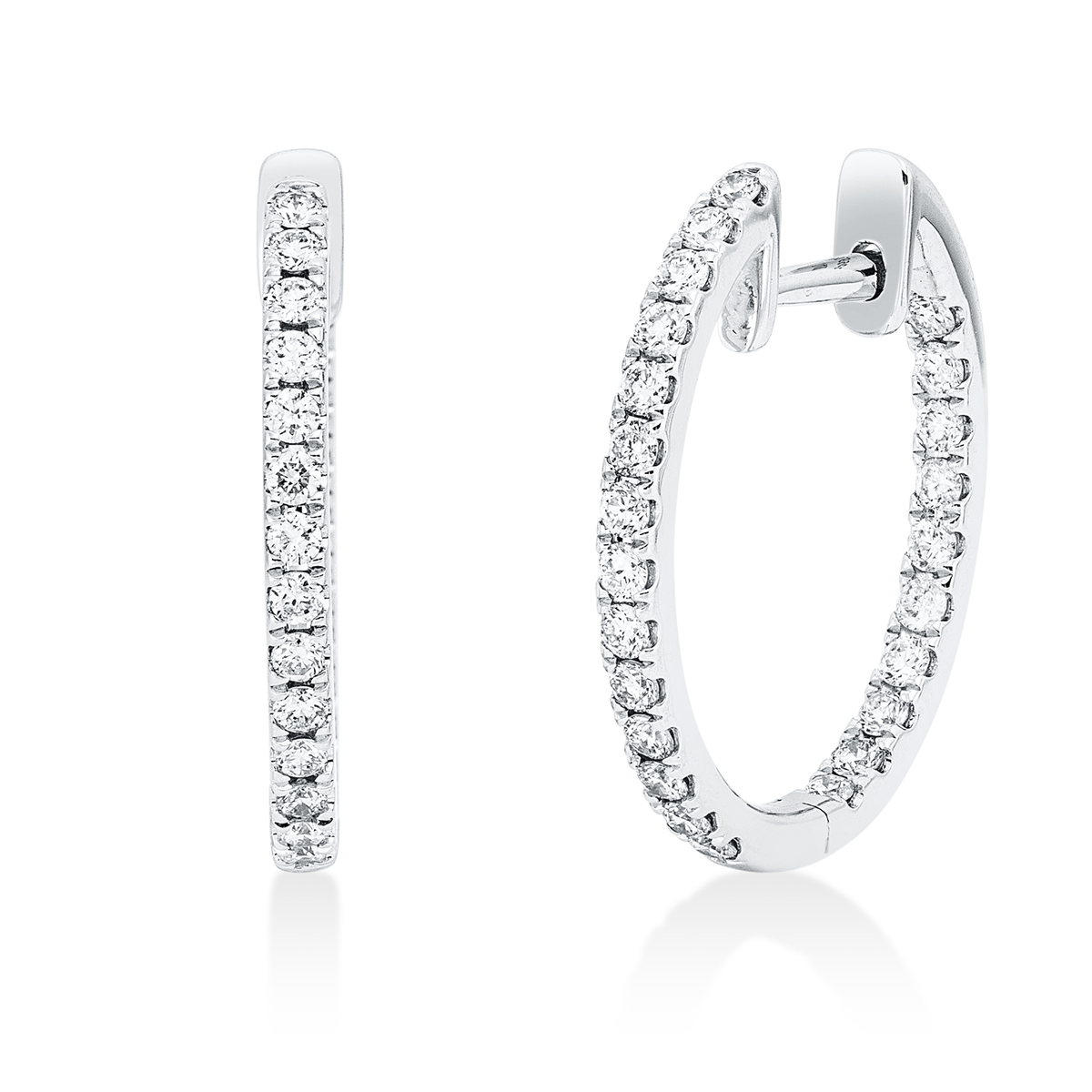 Creolen 14 kt WG, 48 Brillanten 0,69 ct, TW-si, H:20,1 mm, B:18,2 mm, S:1,7 mm