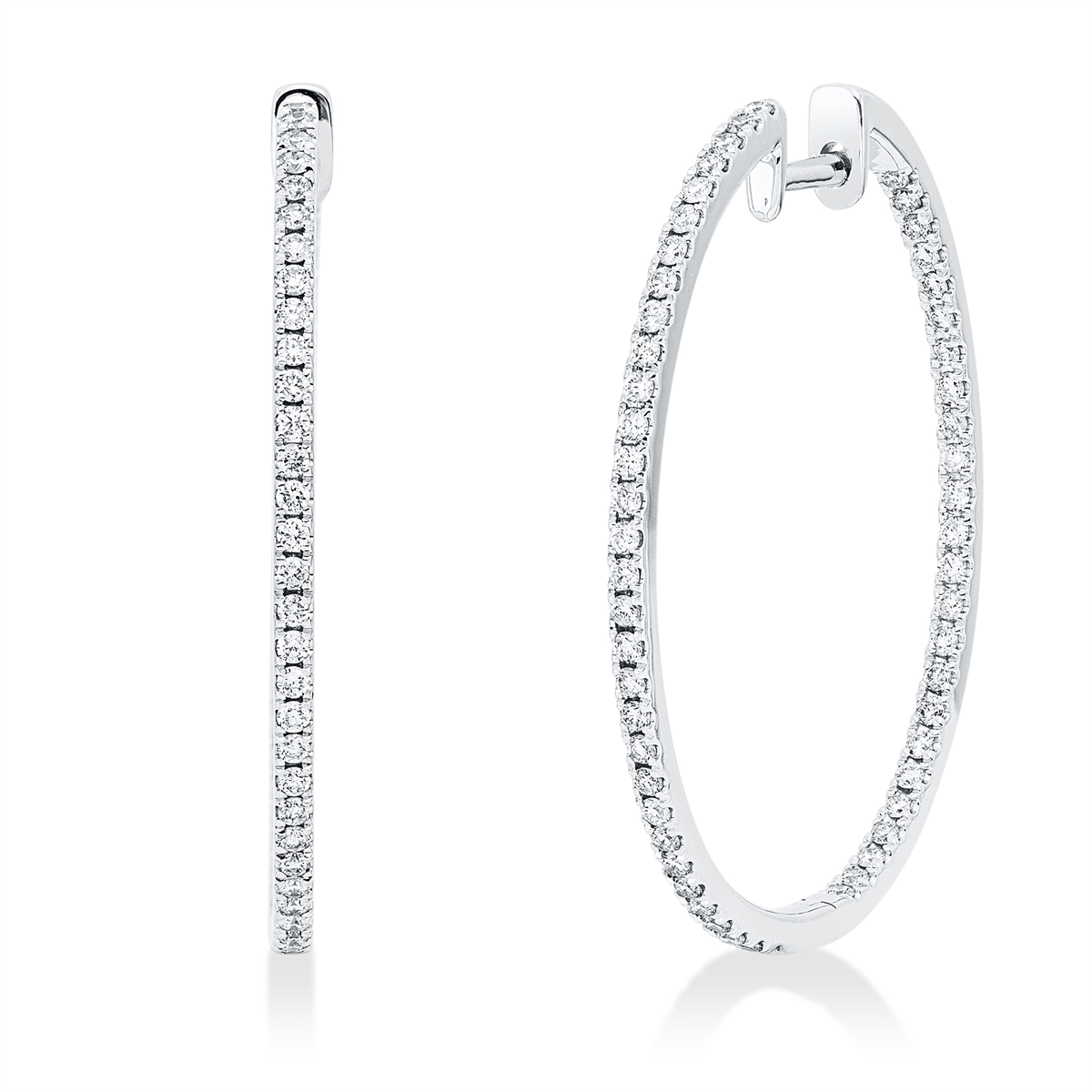 Creolen 14 kt WG, 112 Brillanten 0,95 ct, TW-si, H:34,7 mm, B:29,9 mm, S:1,5 mm