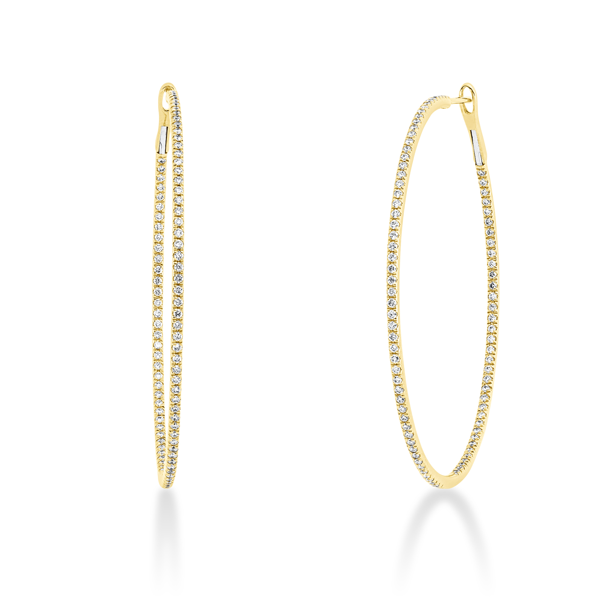 Creolen 18 kt GG, 180 Brillanten 0,90 ct, TW-si, H:45,5 mm, B:46,2 mm, S:1,3 mm