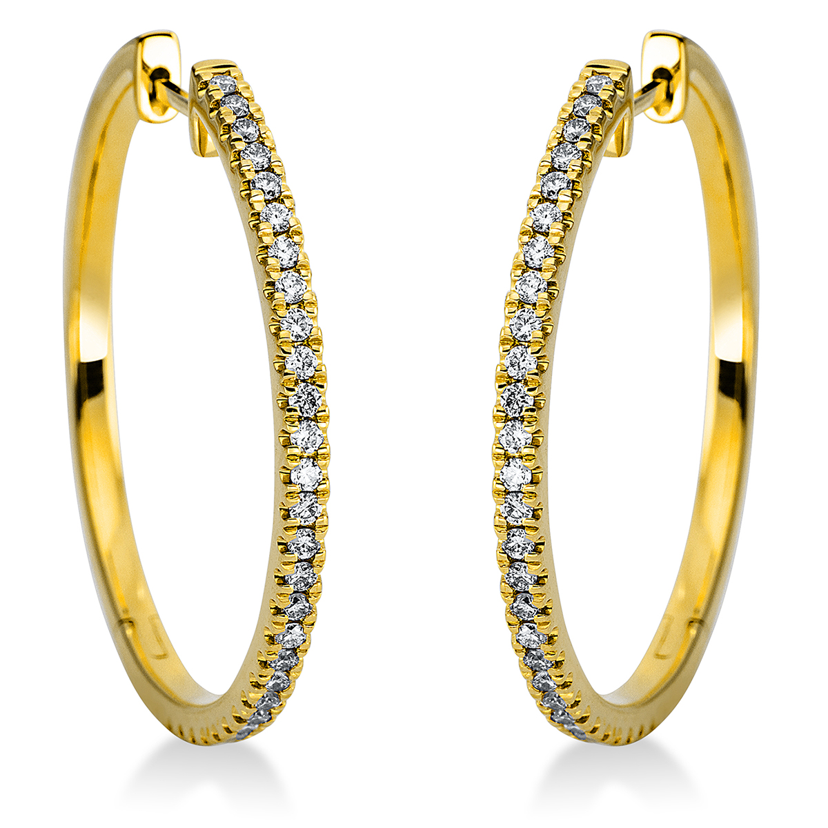 Creolen 18 kt GG, 58 Brillanten 0,38 ct, TW-si, H:26,2 mm, B:26,1 mm, S:1,6 mm