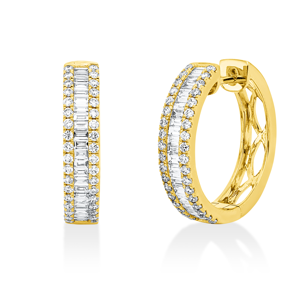 Creolen 18 kt GG, 46 Baguette 0,52 ct, TW-si, 72 Brillanten 0,53 ct, TW-si
