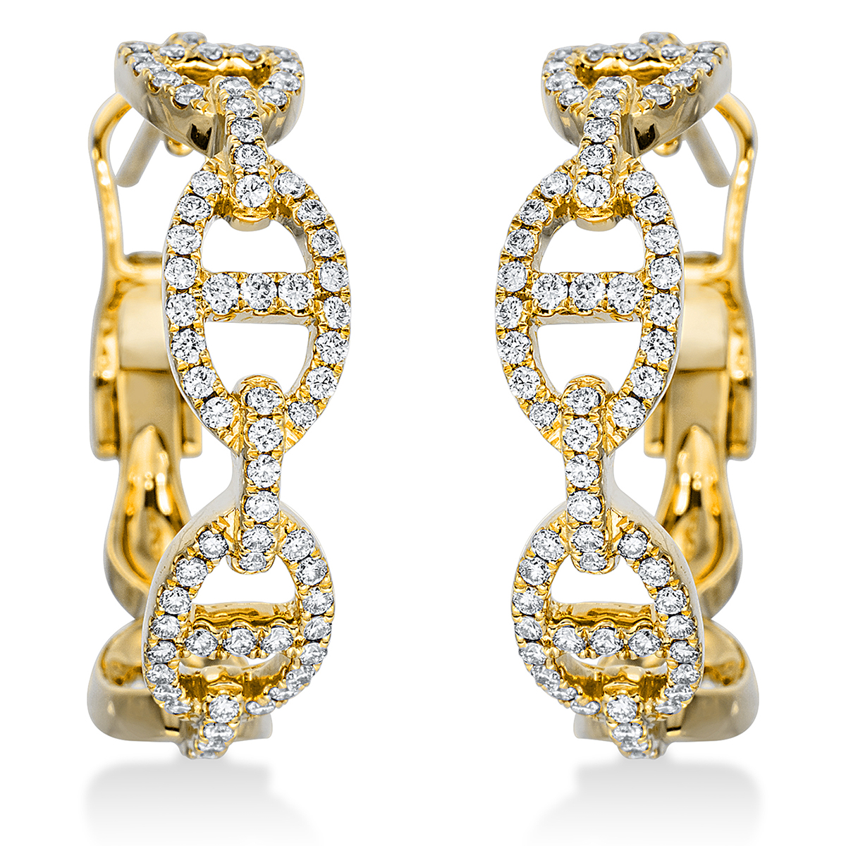 Creolen 18 kt GG, 156 Brillanten 0,73 ct, W-si, H:25,4 mm, B:23,6 mm, S:6,0 mm