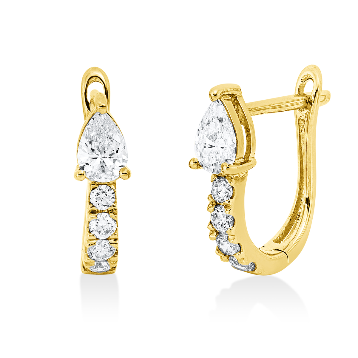 Creolen 18 kt GG, 2 Tropfen 0,40 ct, TW-vsi, 8 Brillanten 0,22 ct, TW-si, H:13,0 mm, B:11,9 mm, S:3,8 mm