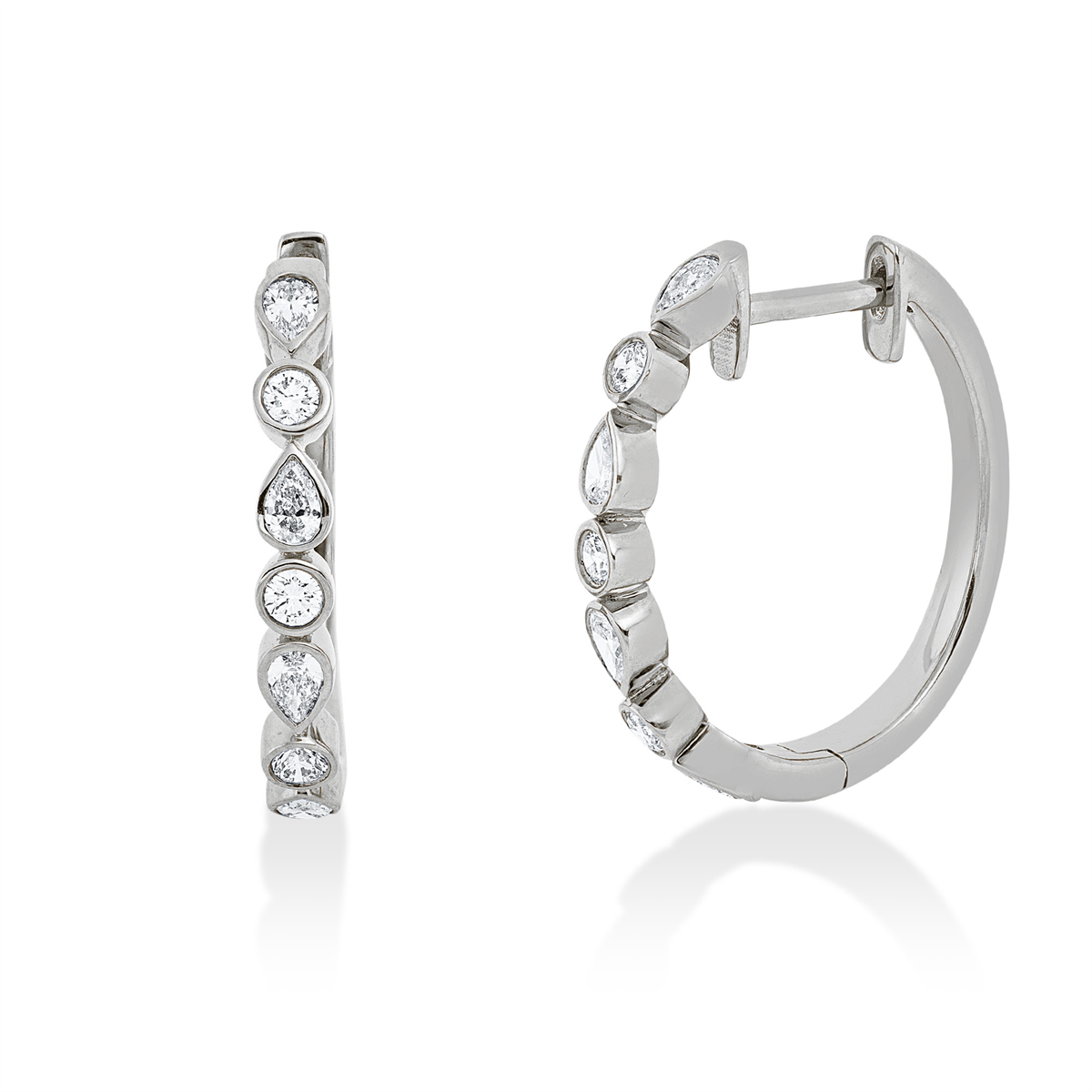 Creolen 18 kt GG, 8 Tropfen 0,40 ct, TW-si, 6 Brillanten 0,21 ct, TW-si, H:20,0 mm, B:17,4 mm, S:2,5 mm