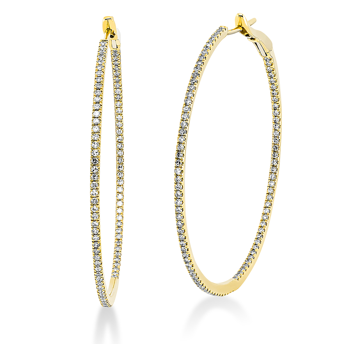 Creolen 18 kt GG, 188 Diamanten 0,66 ct, TW-si, H:41,6 mm, B:41,3 mm, S:1,3 mm