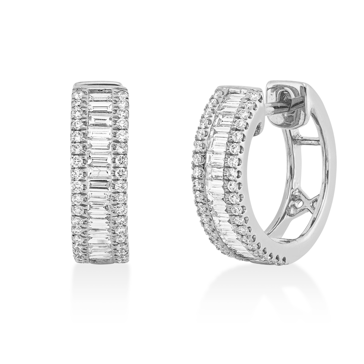 Creolen 18 kt GG, 76 Brillanten 0,27 ct, TW-si, 34 Baguette 0,49 ct, TW-si, H:11,4 mm, B:15,7 mm, S:4,5 mm
