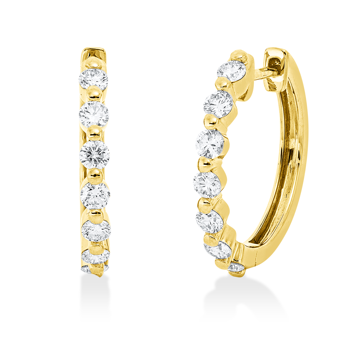 Creolen 18 kt GG, 14 Brillanten 0,60 ct, TW-si, H:17,6 mm, B:17,8 mm, S:2,2 mm