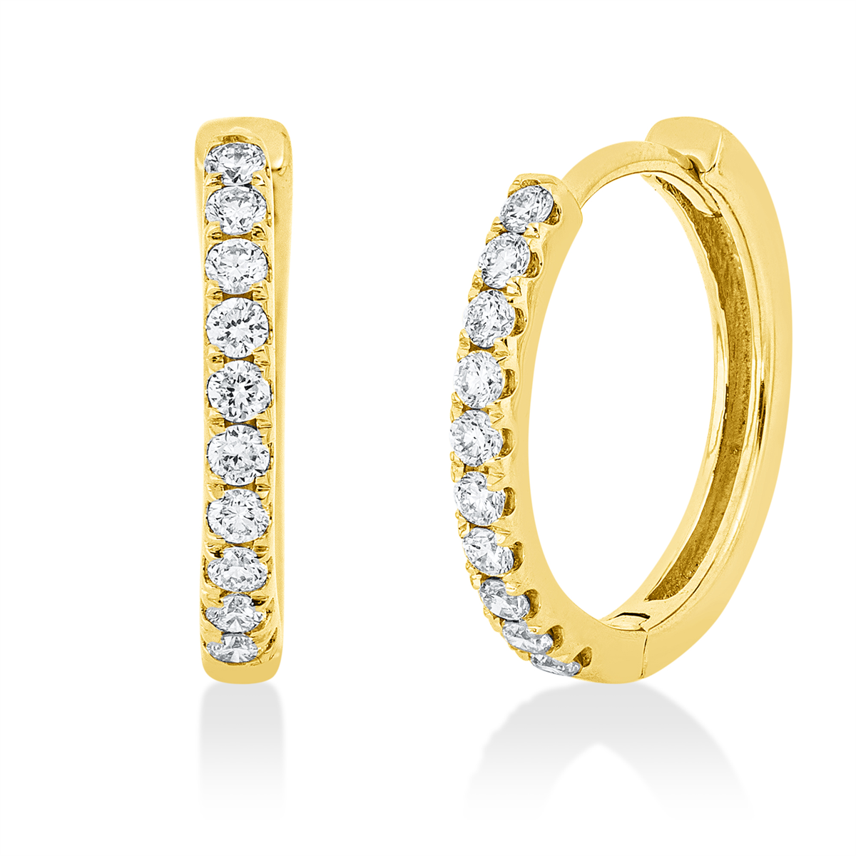 Creolen 18 kt GG, 20 Brillanten 0,21 ct, TW-si, H:12,8 mm, B:13,8 mm, S:1,6 mm
