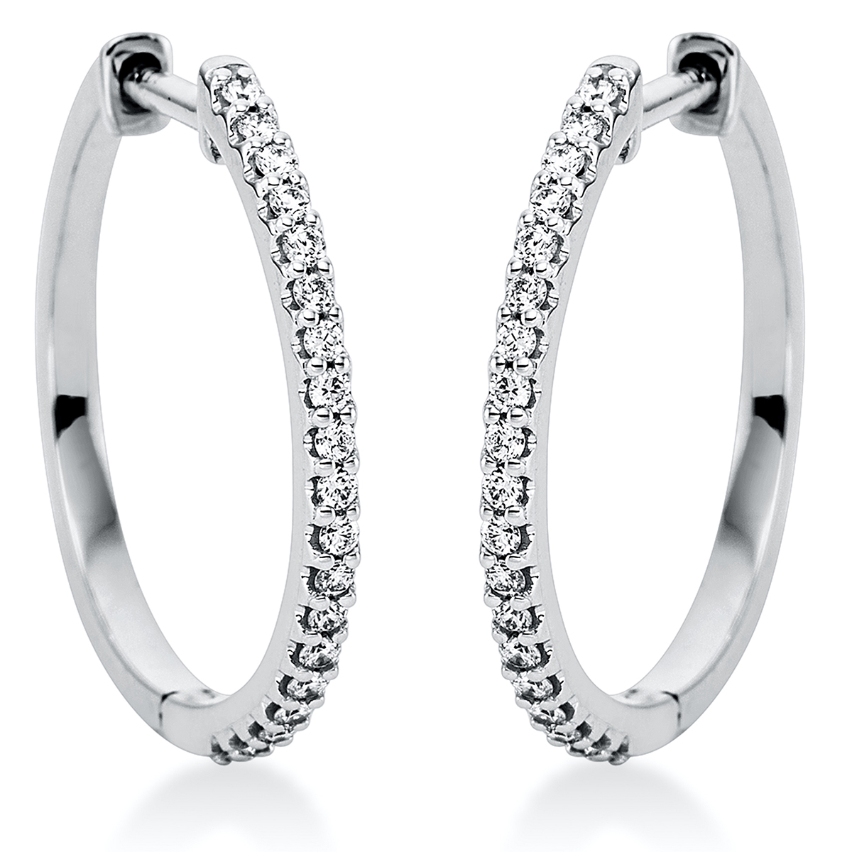 Creolen 18 kt GG, Fassung rhodiniert, 38 Brillanten 0,26 ct, TW-si, H:20,4 mm, B:21,1 mm, S:1,6 mm