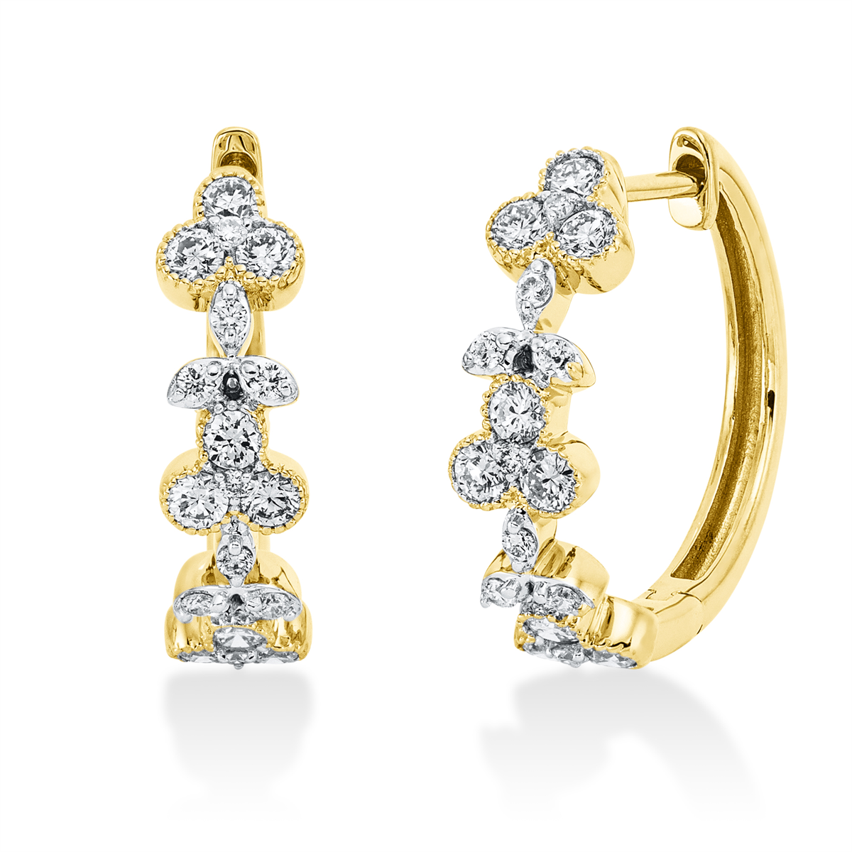 Creolen 18 kt GG, Fassung rhodiniert, 18 Brillanten 0,52 ct, TW-si, 18 Brillanten 0,13 ct, TW-si, H:17,0 mm, B:19,0 mm, S:4,8 mm