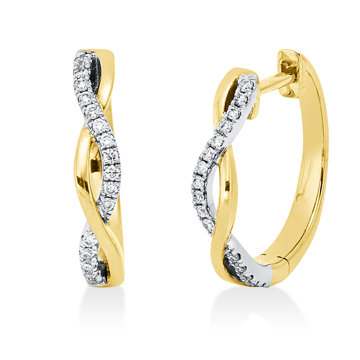 Creolen 18 kt GG+WG, 32 Brillanten 0,10 ct, TW-si, H:14,2 mm, B:13,1 mm, S:2,9 mm