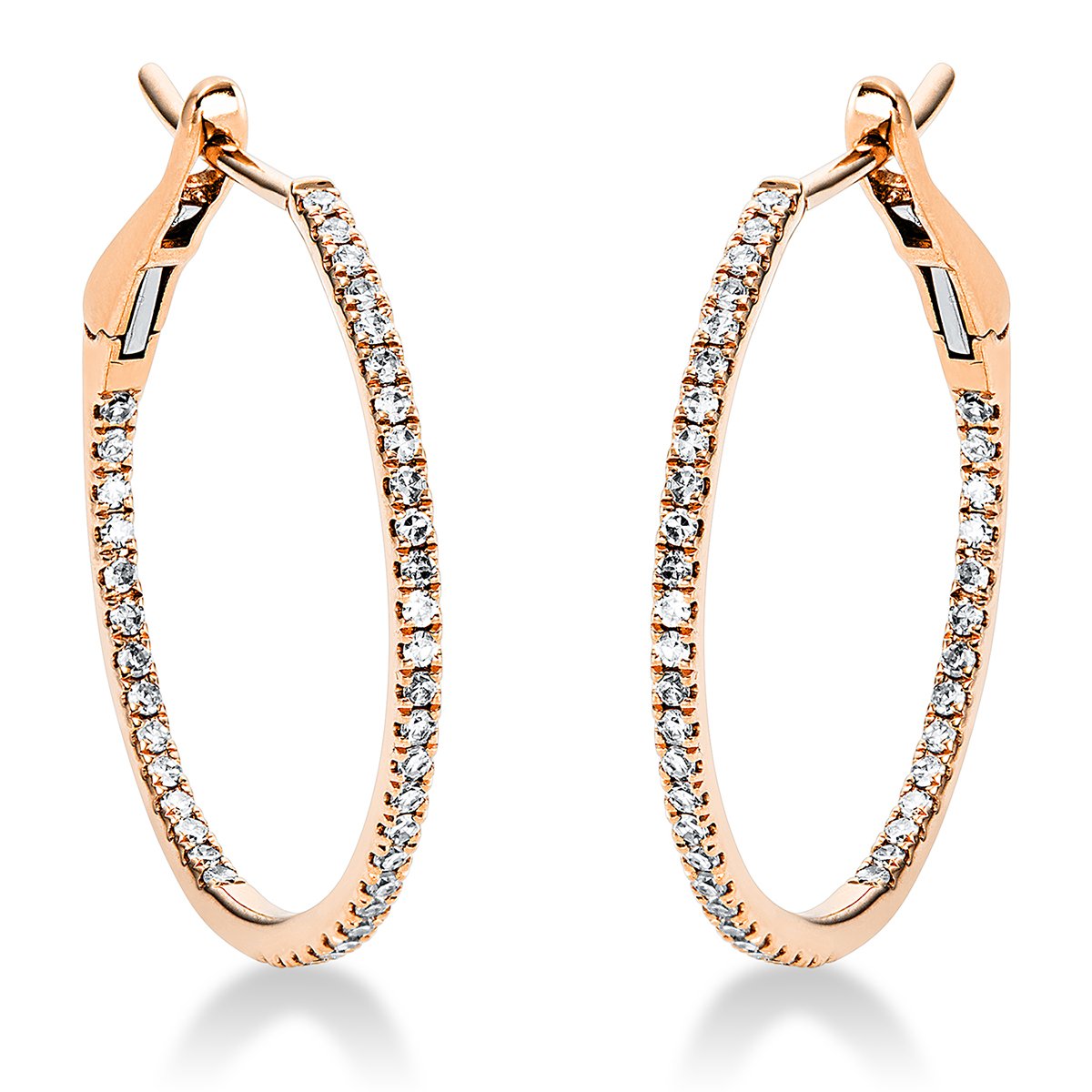 Creolen 18 kt RG, 86 Diamanten 0,35 ct, TW-si, H:23,4 mm, B:22,2 mm, S:1,0 mm