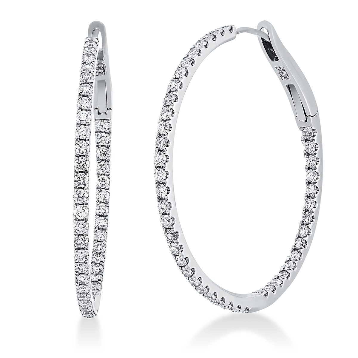 Creolen 18 kt RG, 90 Brillanten 1,06 ct, W-si, H:29,6 mm, B:30,0 mm, S:1,5 mm