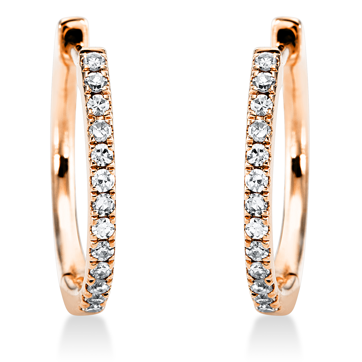 Creolen 18 kt RG, 28 Diamanten 0,10 ct, TW-si, H:12,0 mm, B:112,8 mm, S:1,2 mm