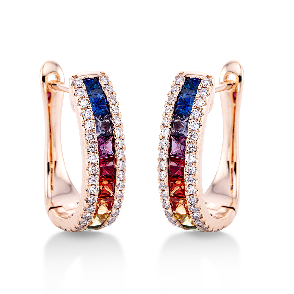 Creolen 18 kt RG, 76 Brillanten 0,36 ct, TW-si, 20 Saphire 1,48 ct fancy
