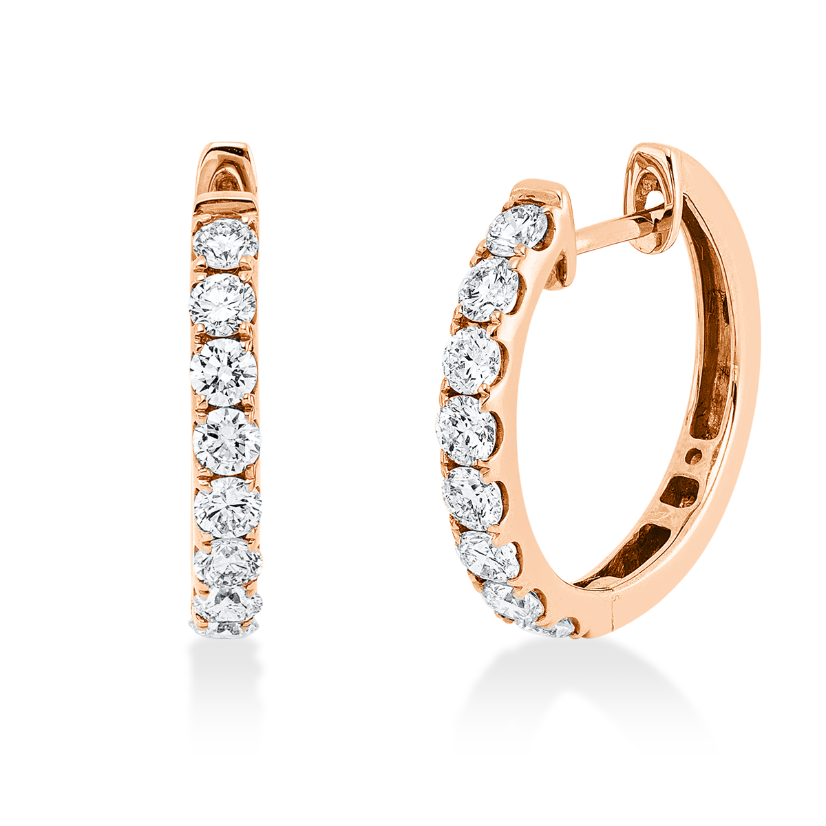 Creolen 18 kt RG, 16 Brillanten 0,70 ct, TW-si, H:15,6 mm, B:16,6 mm, S:2,3 mm
