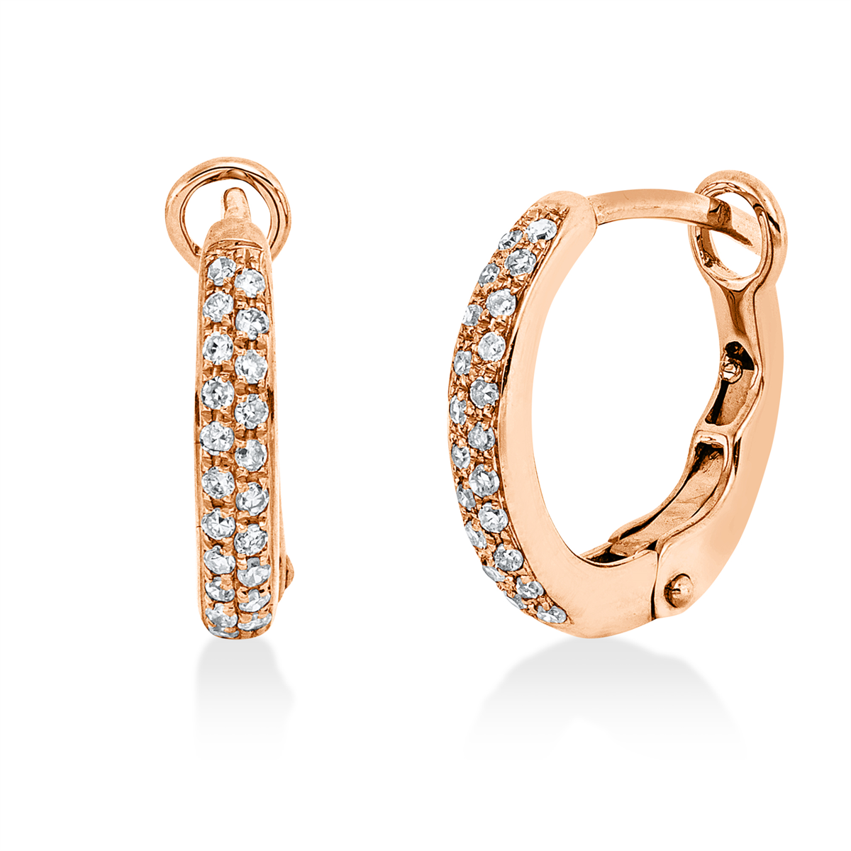 Creolen 18 kt RG, 42 Diamanten 0,16 ct, TW-si, H:11,4 mm, B:10,4 mm, S:0,2 mm