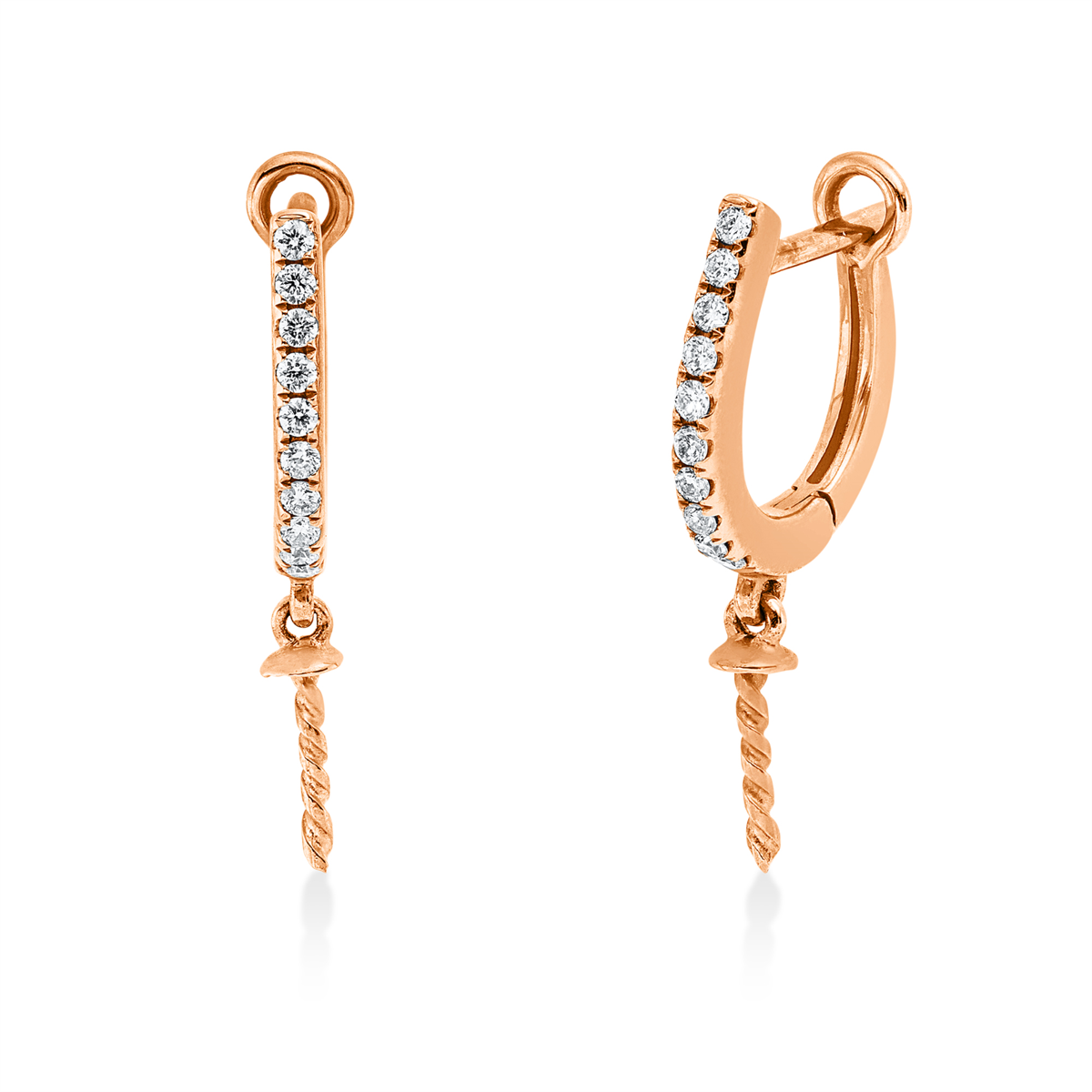 Creolen 18 kt RG, 20 Brillanten 0,10 ct, TW-vsi, Leerfassung für 2x Perle, H:19,5 mm, B:10,0 mm, S:1,4 mm