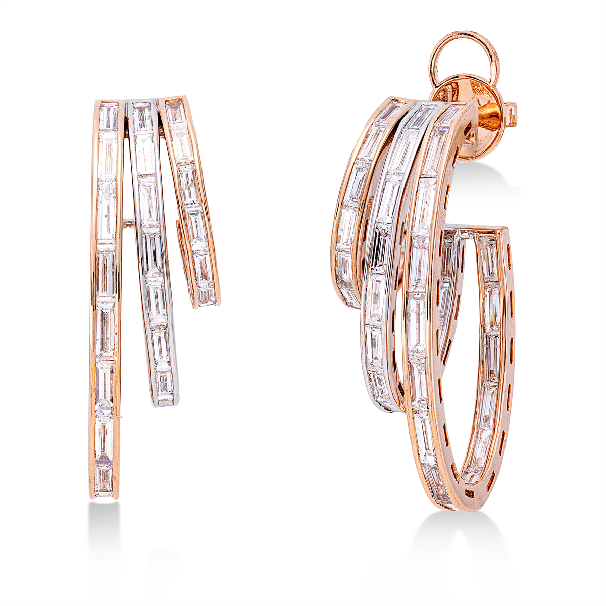 Creolen 18 kt RG, Fassung rhodiniert, 77 Baguette 4,35 ct, TW-si