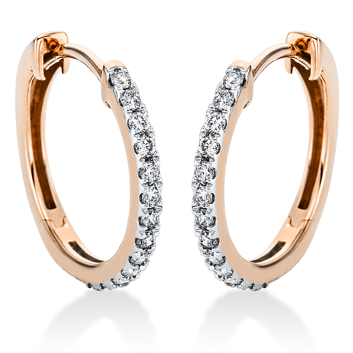 Creolen 18 kt RG, Fassung rhodiniert, 30 Brillanten 0,33 ct, TW-si, H:15,6 mm, B:16,5 mm, S:1,6 mm