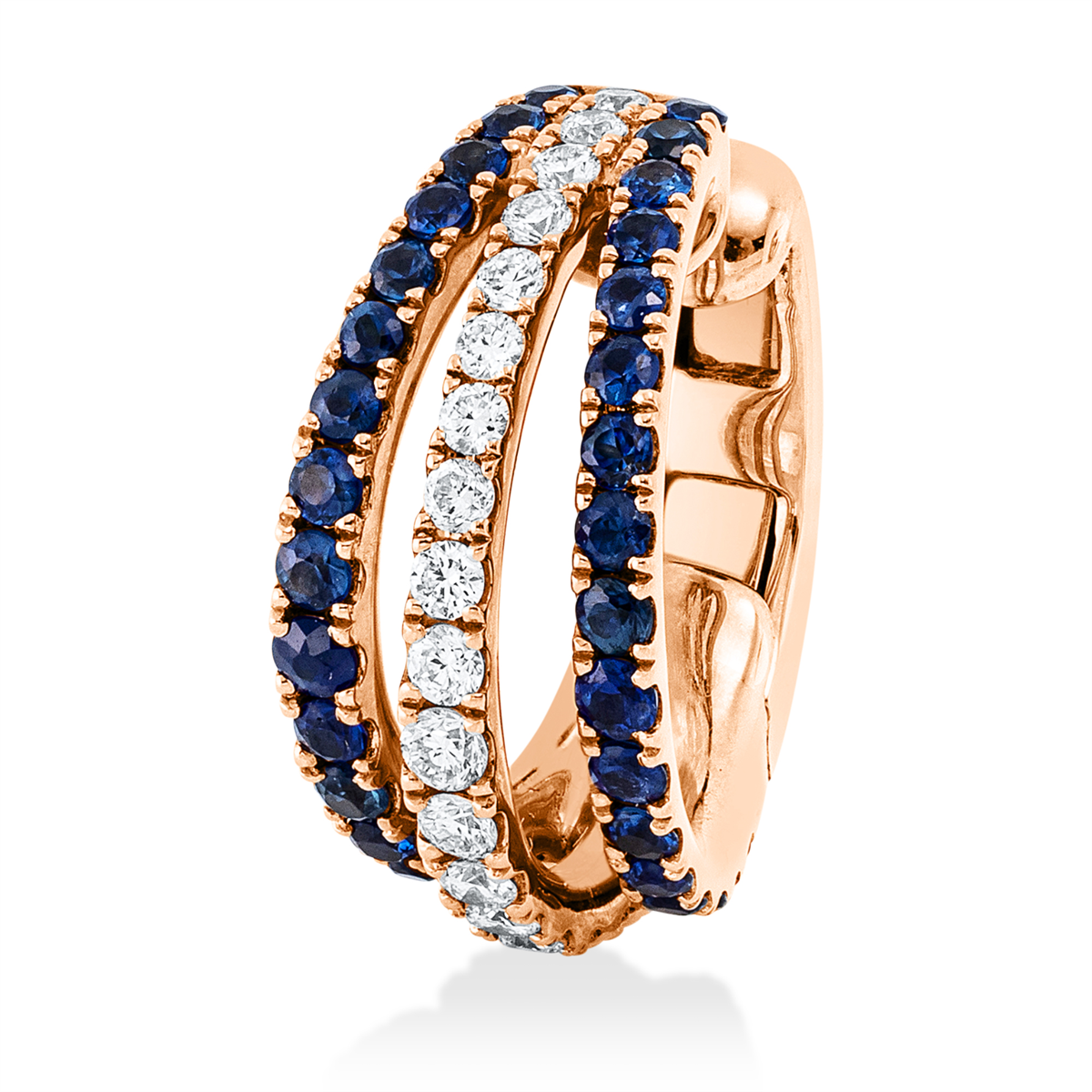 Creolen 18 kt RG, Ohrmanschette, 19 Brillanten 0,20 ct, TW-vsi/si, 34 Saphire 0,46 ct blau