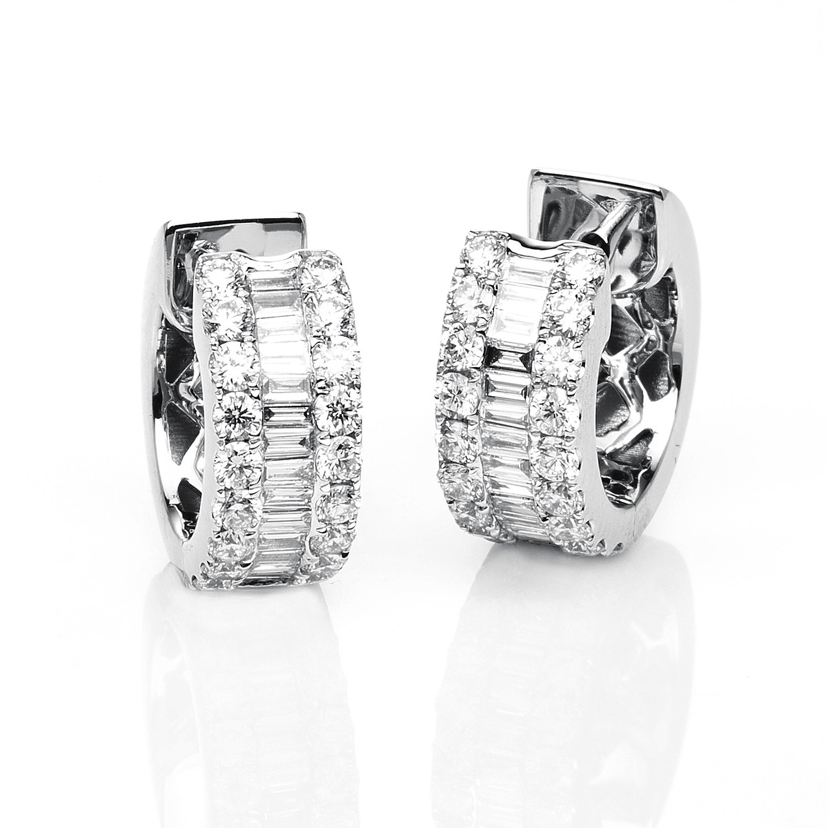Creolen 18 kt WG, 34 Baguette 0,36 ct, TW-si, 36 Brillanten 0,59 ct, TW-si