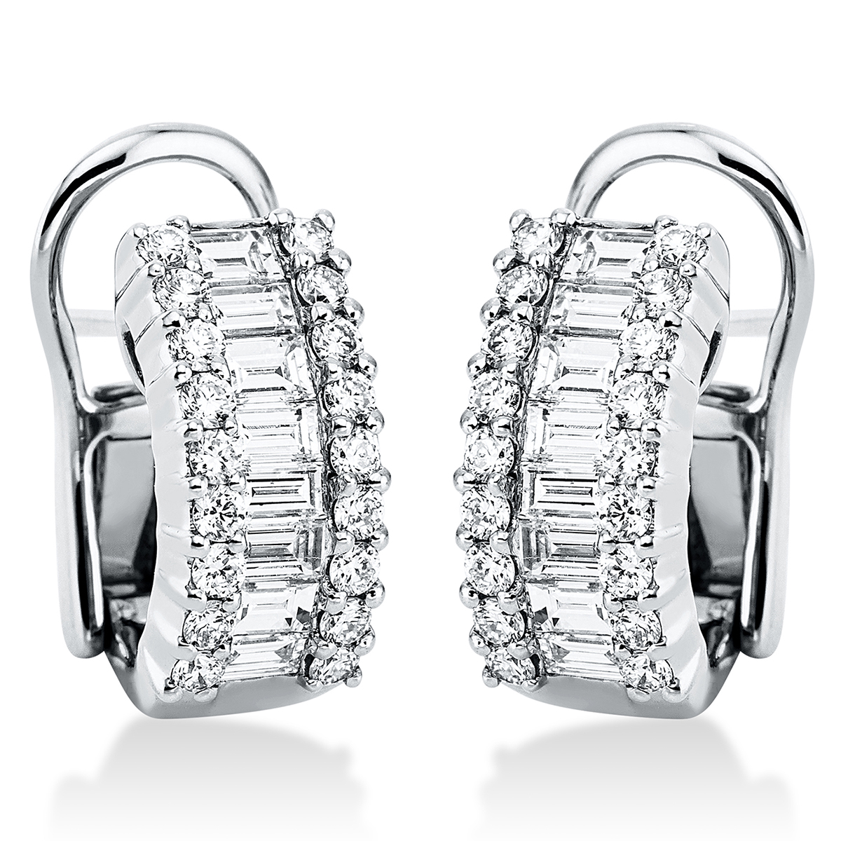 Creolen 18 kt WG, 14 Trapeze 1,12 ct, TW-vsi, 36 Brillanten 0,53 ct, TW-vsi, H:16,6 mm, B:12,5 mm, S:6,5 mm