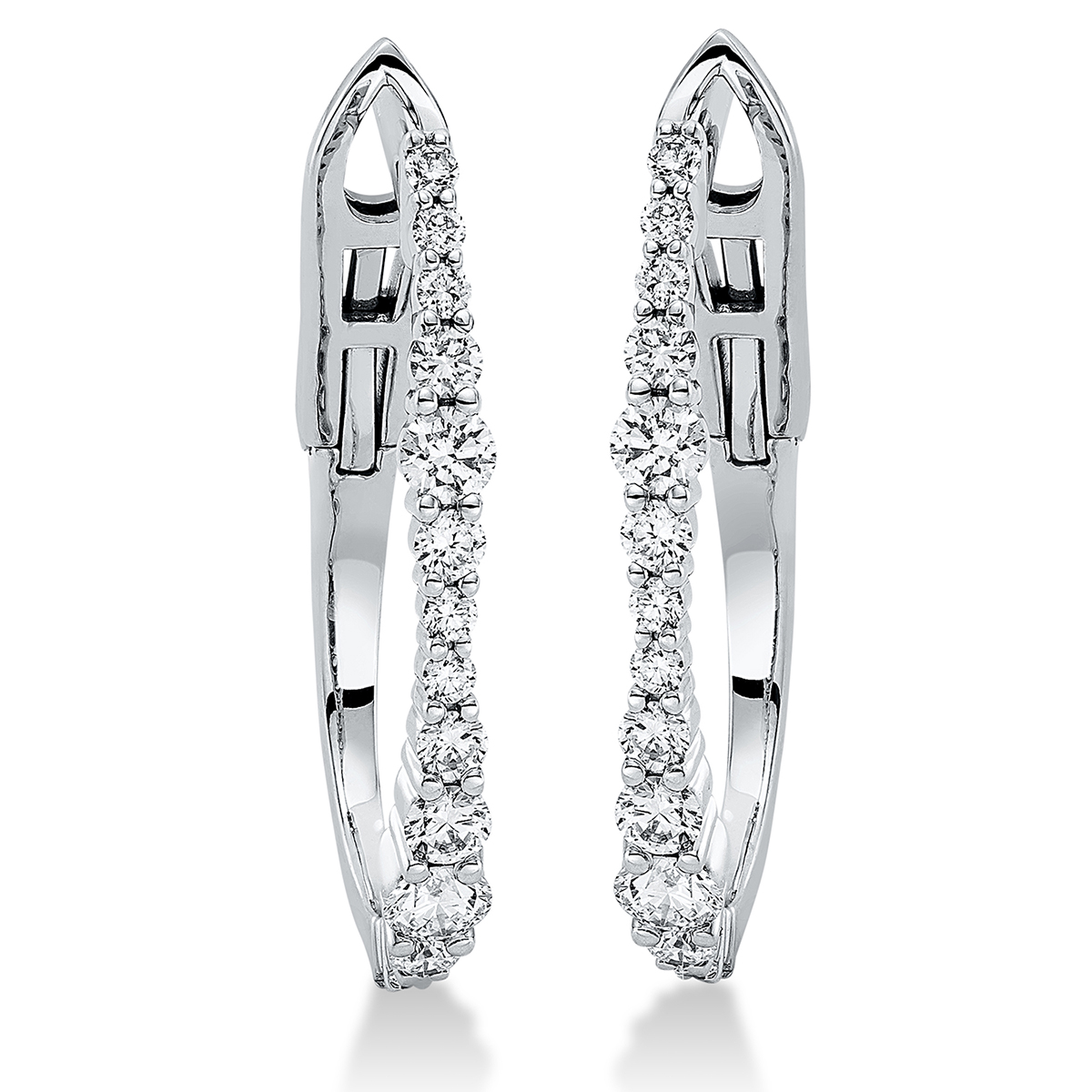 Creolen 18 kt WG, 8 Brillanten 0,24 ct, TW-si, 2 Brillanten 0,11 ct, TW-si, 2 Brillanten 0,15 ct, TW-si, 2 Brillanten 0,22 ct, TW-si, 14 Brillanten 0,19 ct, TW-si