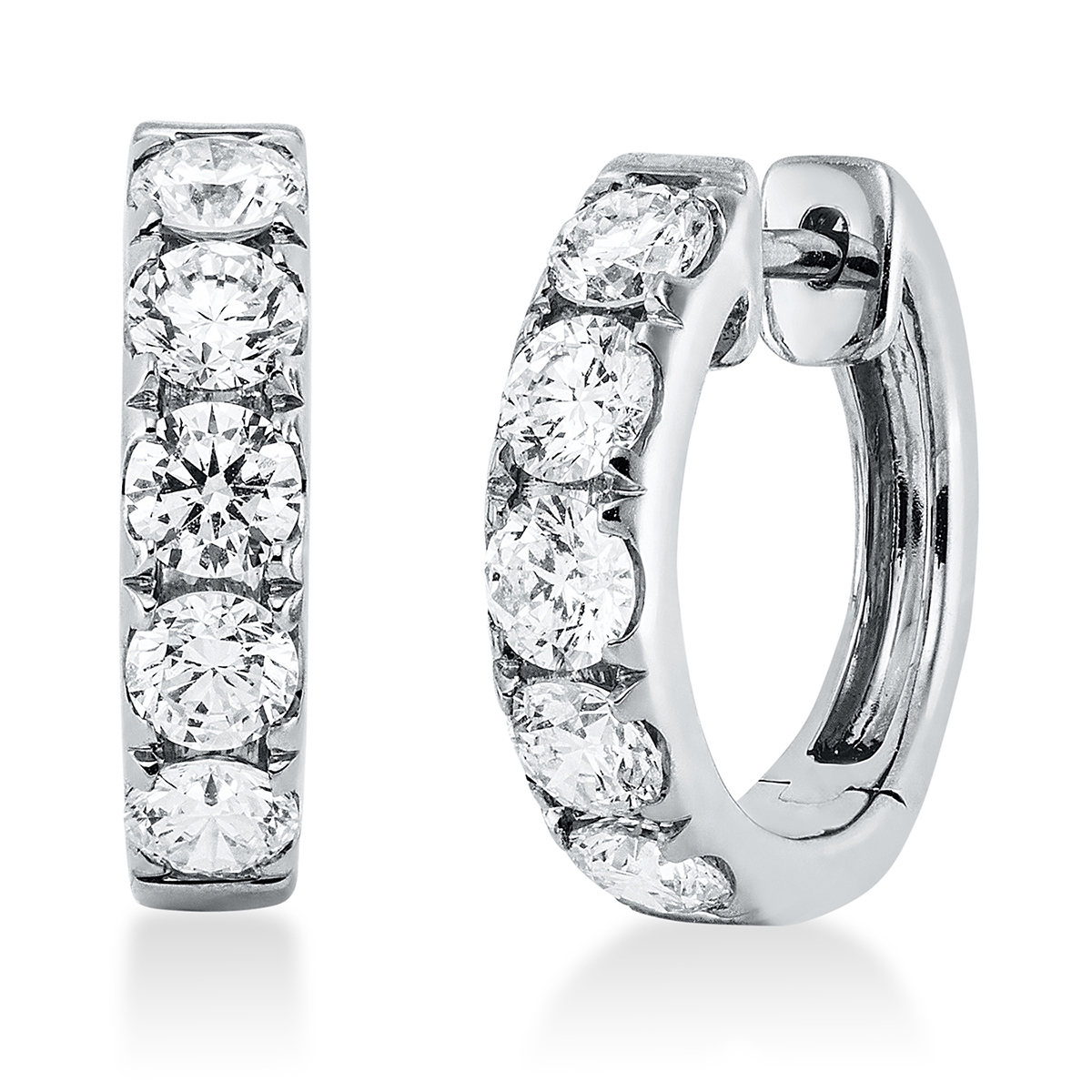 Creolen 18 kt WG, 10 Brillanten 1,45 ct, TW-si, H:15,1 mm, B:15,9 mm, S:3,7 mm
