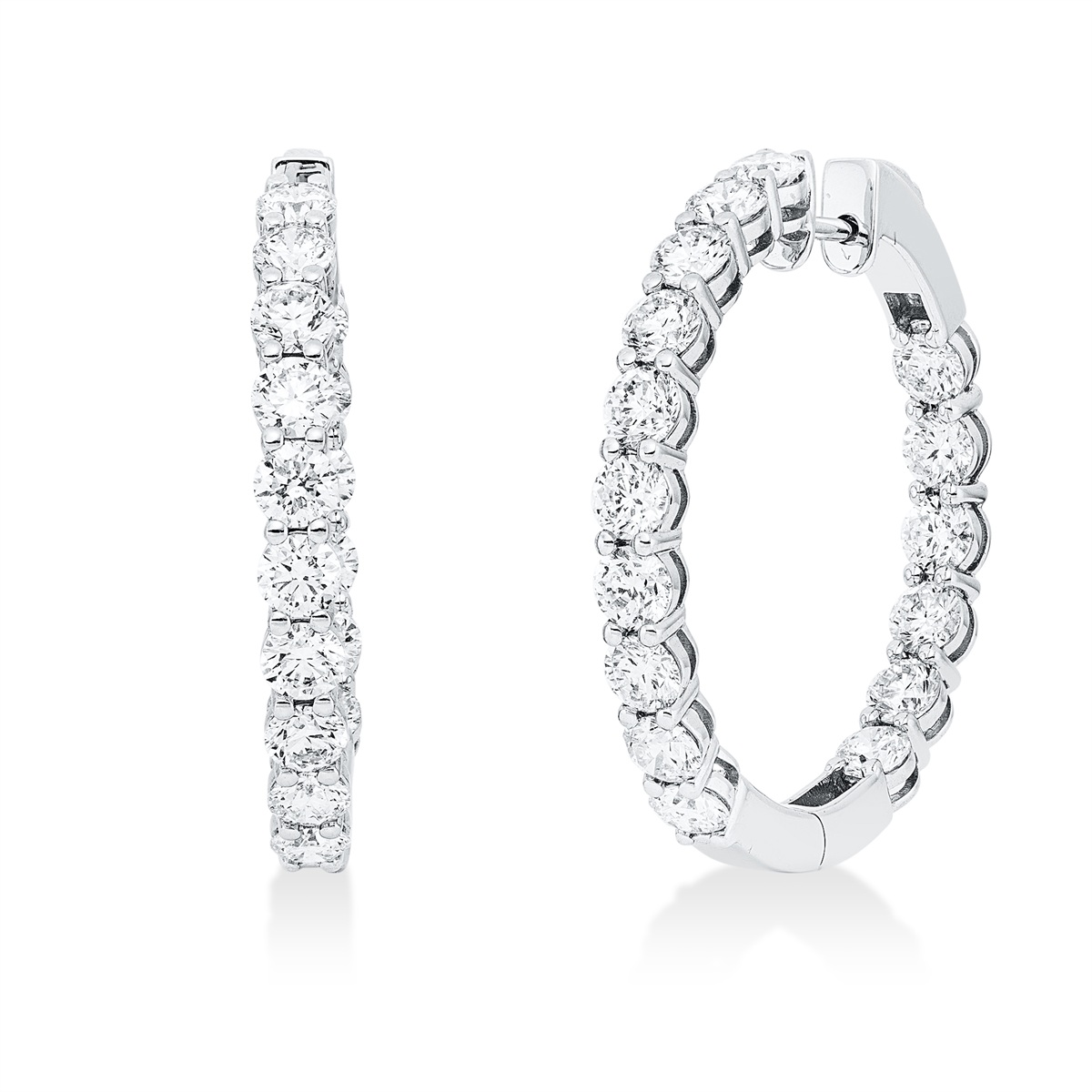 Creolen 18 kt WG, 32 Brillanten 6,49 ct, TW-si, H:32,8 mm, B:33,7 mm, S:3,7 mm