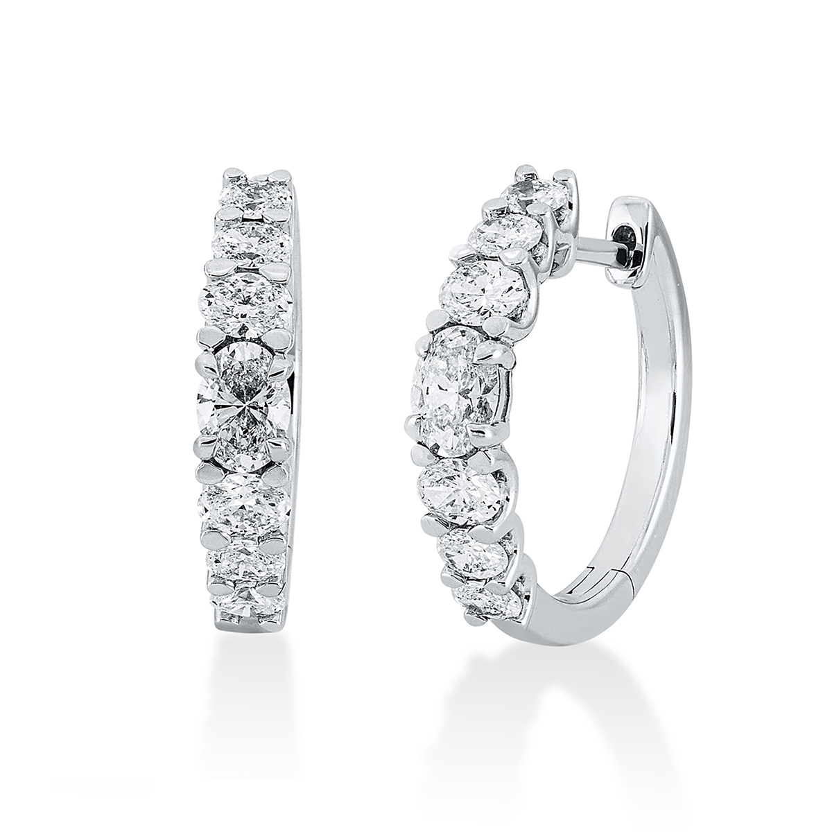 Creolen 18 kt WG, 14 Oval 1,16 ct, TW-si, H:16,8 mm, B:17,3 mm, S:3,6 mm