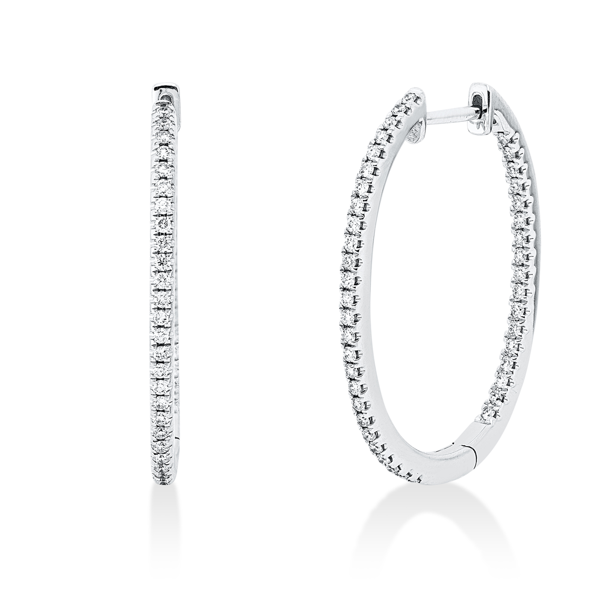 Creolen 18 kt WG, 86 Brillanten 0,57 ct, W-si, H:28,9 mm, B:22,0 mm, S:1,7 mm
