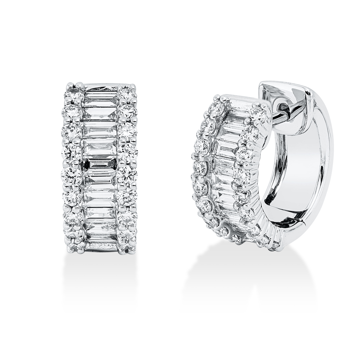 Creolen 18 kt WG, 20 Baguette 0,75 ct, TW-vsi, 36 Brillanten 0,68 ct, TW-si, H:14,0 mm, B:15,0 mm, S:6,3 mm