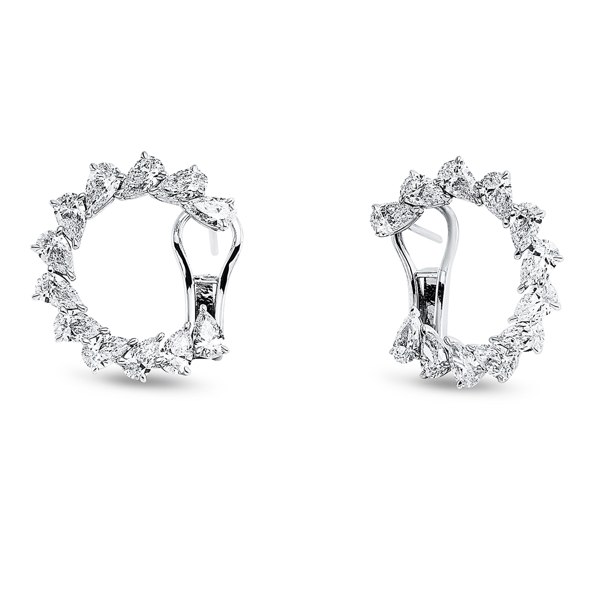 Creolen 18 kt WG, 24 Tropfen 4,64 ct, F-vvs, H:23,0 mm, B:22,7 mm, S:3,2 mm