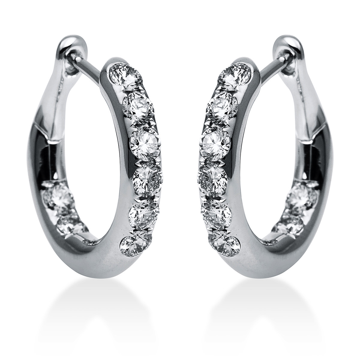 Creolen 18 kt WG, 16 Brillanten 0,75 ct, TW-vsi, H:15,7 mm, B:15,6 mm, S:2,7 mm