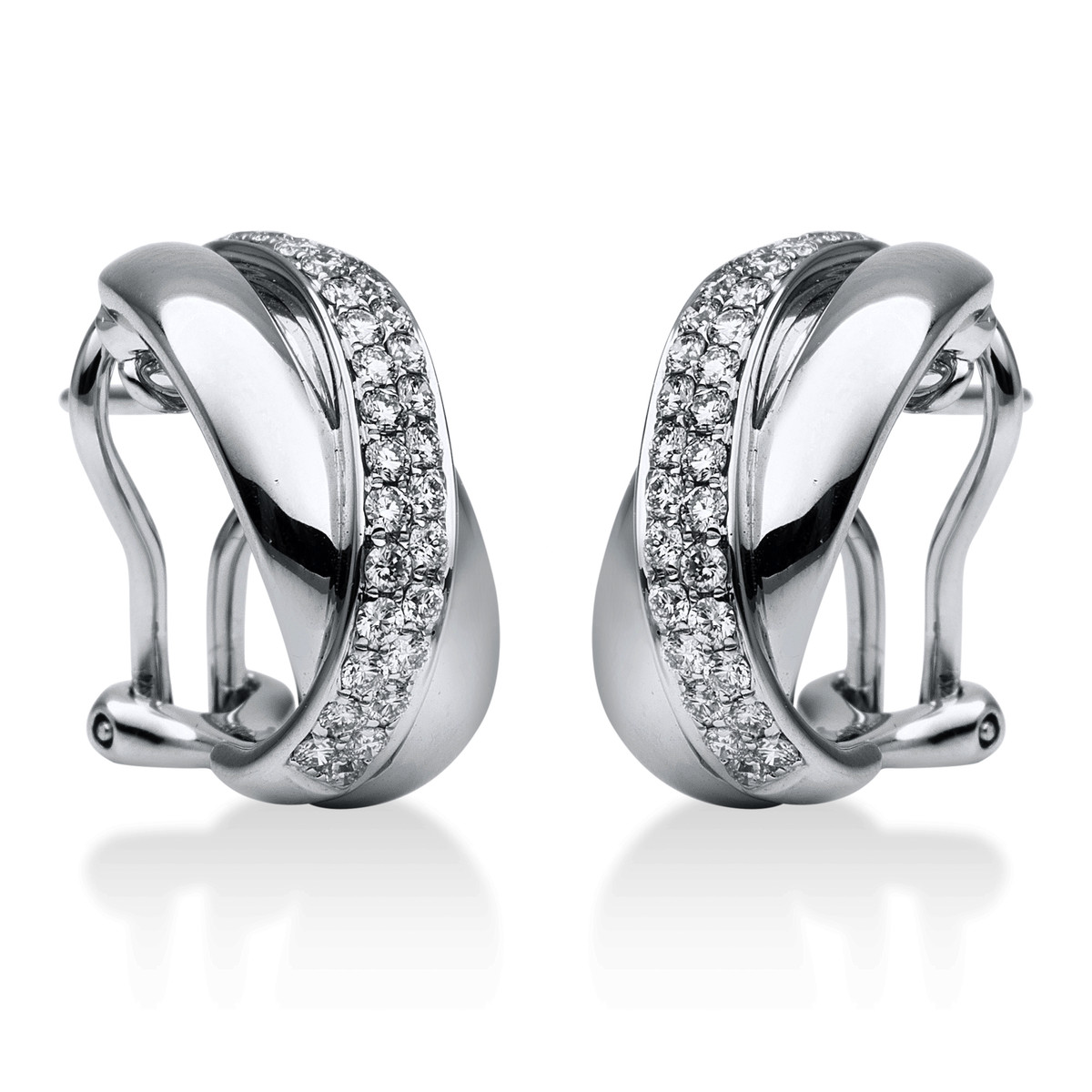 Creolen 18 kt WG, 60 Brillanten 0,63 ct, TW-vsi, H:16,9 mm, B:7,3 mm