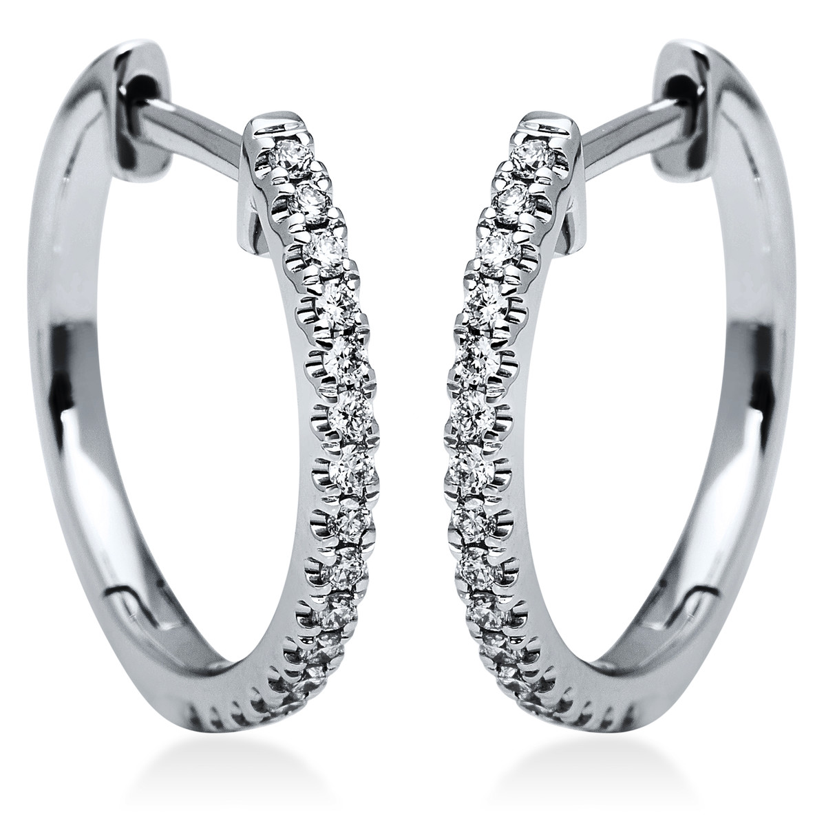 Creolen 18 kt WG, 34 Brillanten 0,21 ct, TW-si, H:15,1 mm, B:16,1 mm, S:1,6 mm