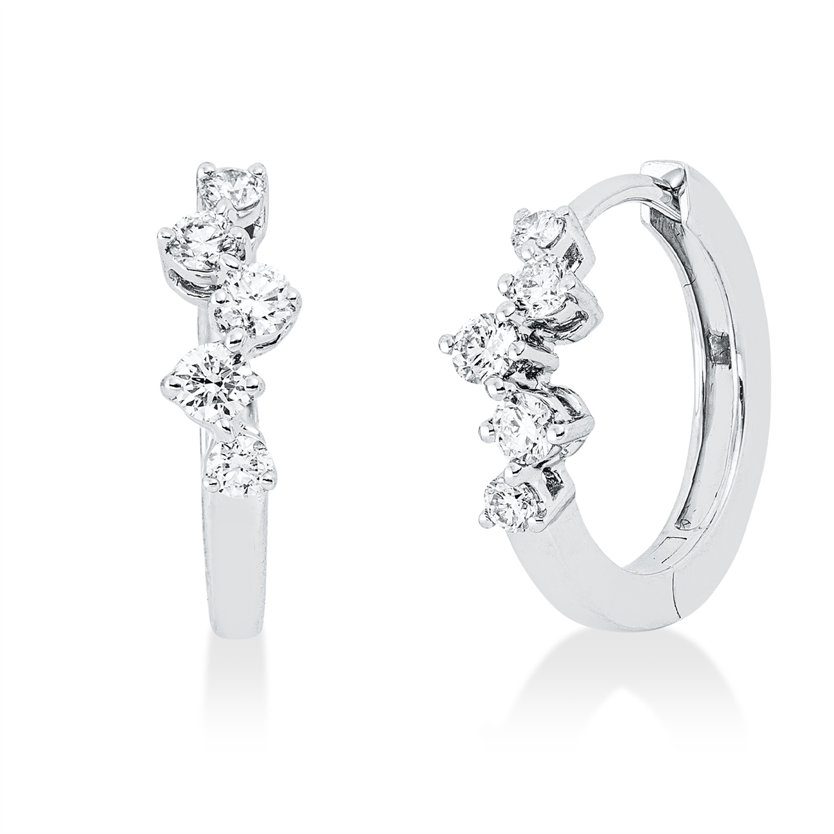 Creolen 18 kt WG, 10 Brillanten 0,35 ct, TW-si, H:13,9 mm, B:15,2 mm, S:4,0 mm