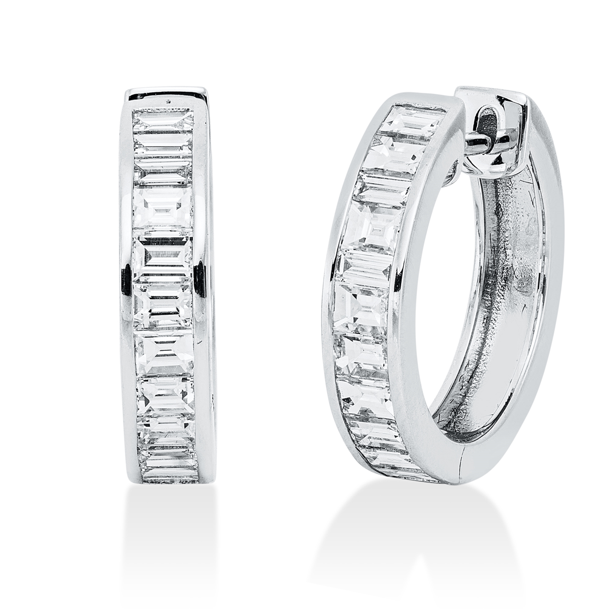 Creolen 18 kt WG, 23 Baguette 1,21 ct, TW-si, H:16,4 mm, B:17,0 mm, S:3,7 mm