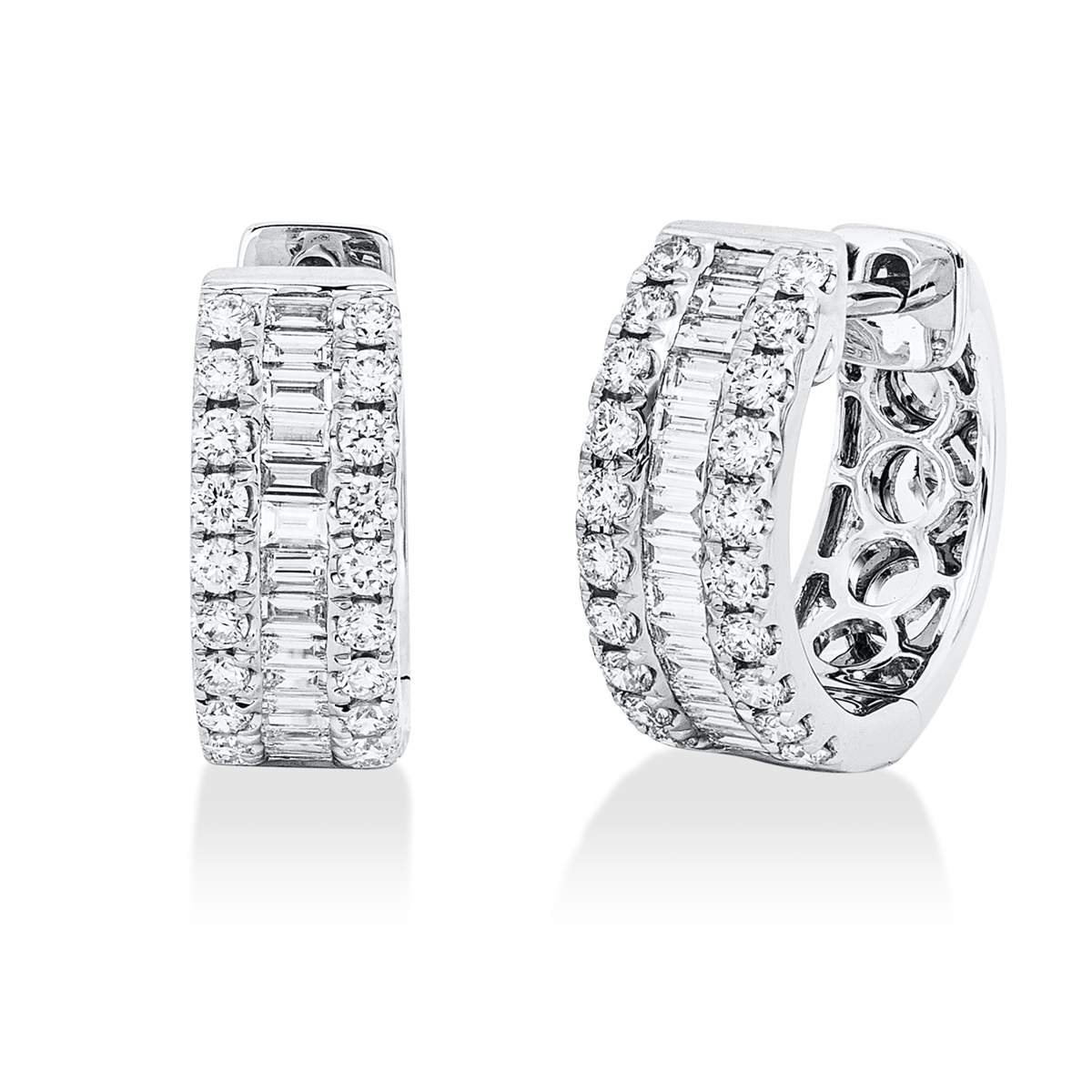 Creolen 18 kt WG, 28 Baguette 0,30 ct, TW-si, 40 Brillanten 0,32 ct, TW-si, H:12,1 mm, B:12,9 mm, S:4,7 mm