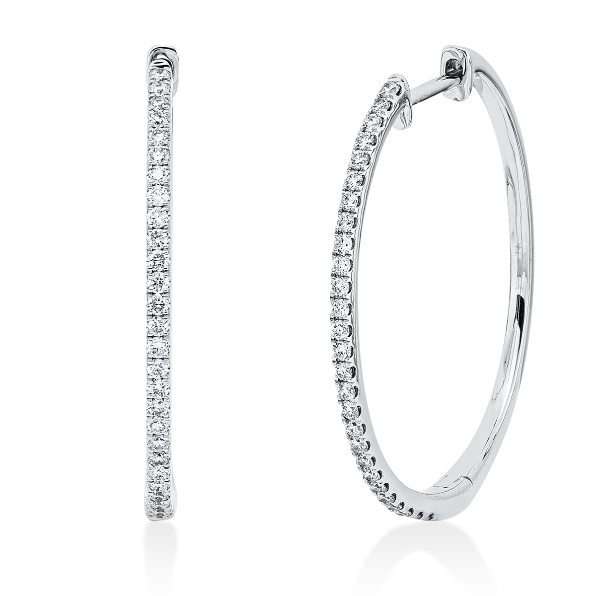 Creolen 18 kt WG, 54 Brillanten 0,25 ct, TW-si, H:25,5 mm, B:22,0 mm, S:1,4 mm