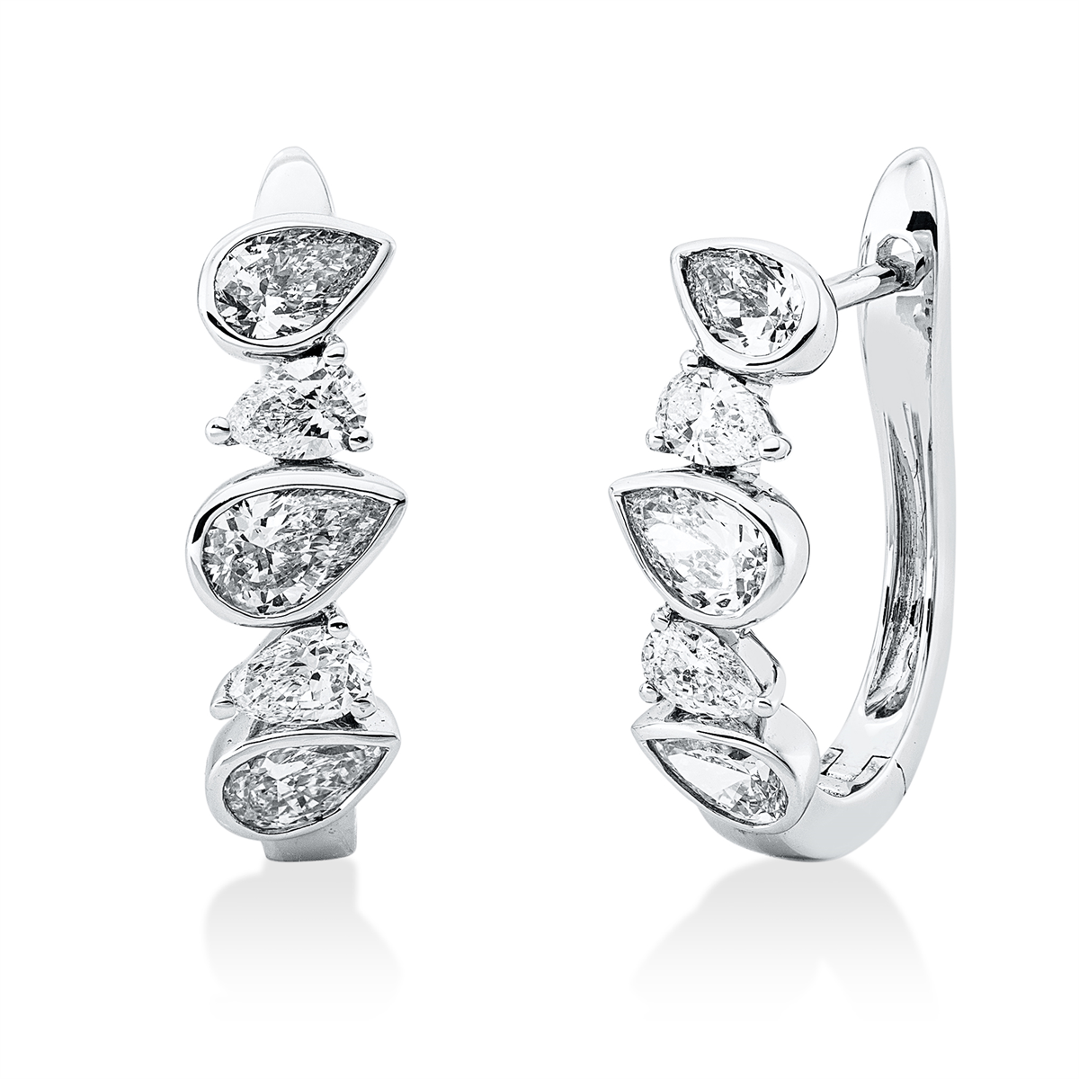 Creolen 18 kt WG, 10 Tropfen 1,22 ct, TW-si, H:16,6 mm, B:13,0 mm, S:5,2 mm