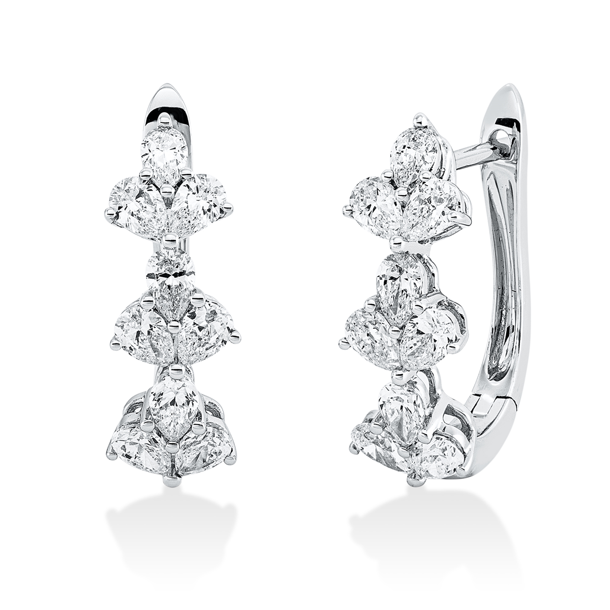 Creolen 18 kt WG, 18 Tropfen 1,44 ct, TW-si, H:18,7 mm, B:14,6 mm, S:6,5 mm