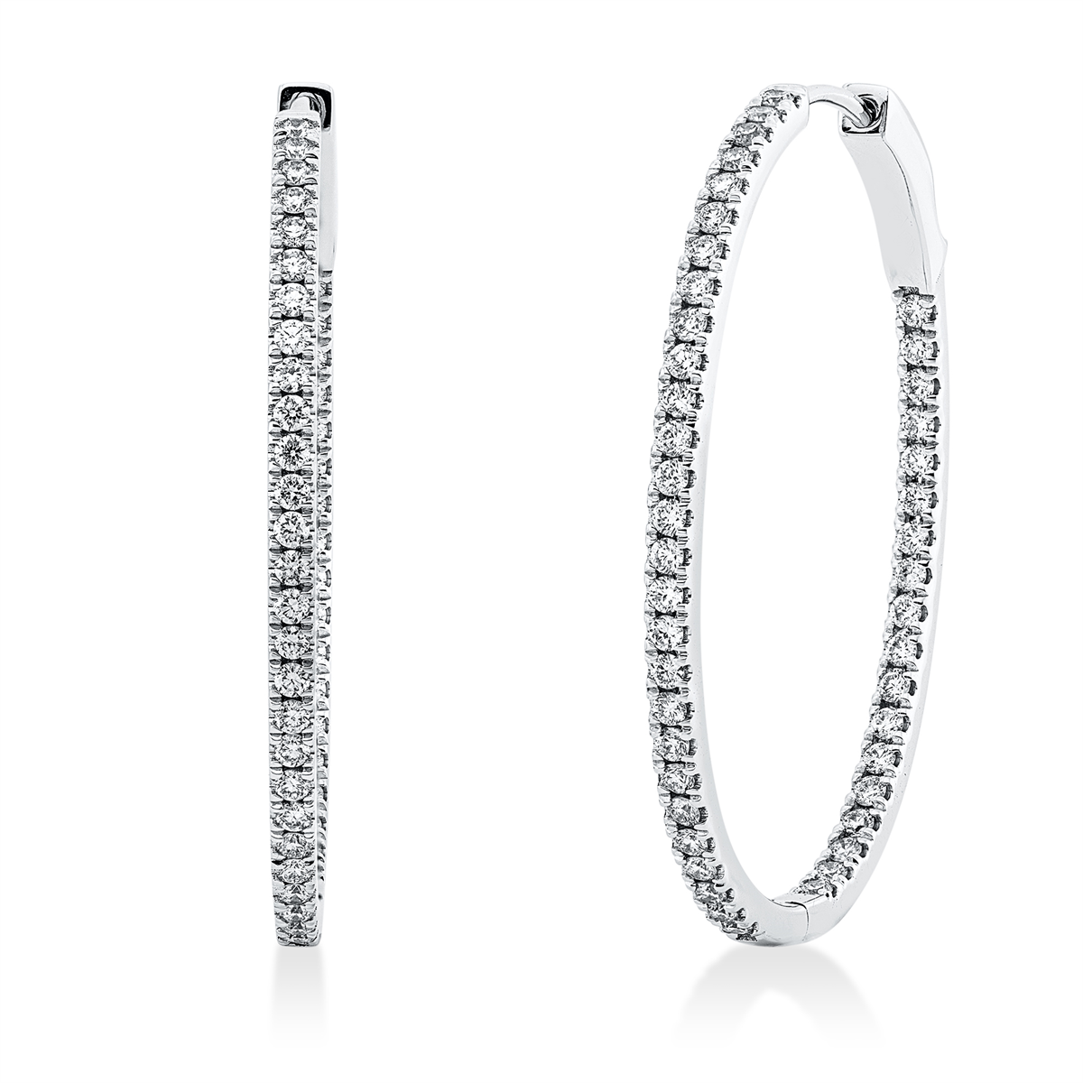Creolen 18 kt WG, 90 Brillanten 1,00 ct, TW-si, H:34,3 mm, B:25,0 mm, S:1,7 mm