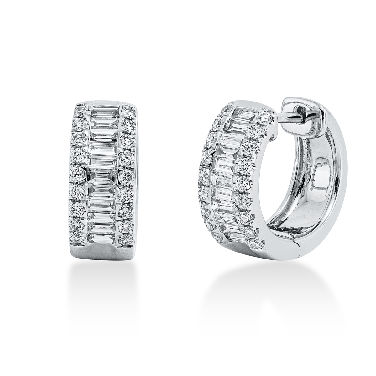 Creolen 18 kt WG, 22 Baguette 0,51 ct, F-vsi, 36 Brillanten 0,33 ct, F-vsi, H:13,3 mm, B:14,2 mm, S:5,4 mm