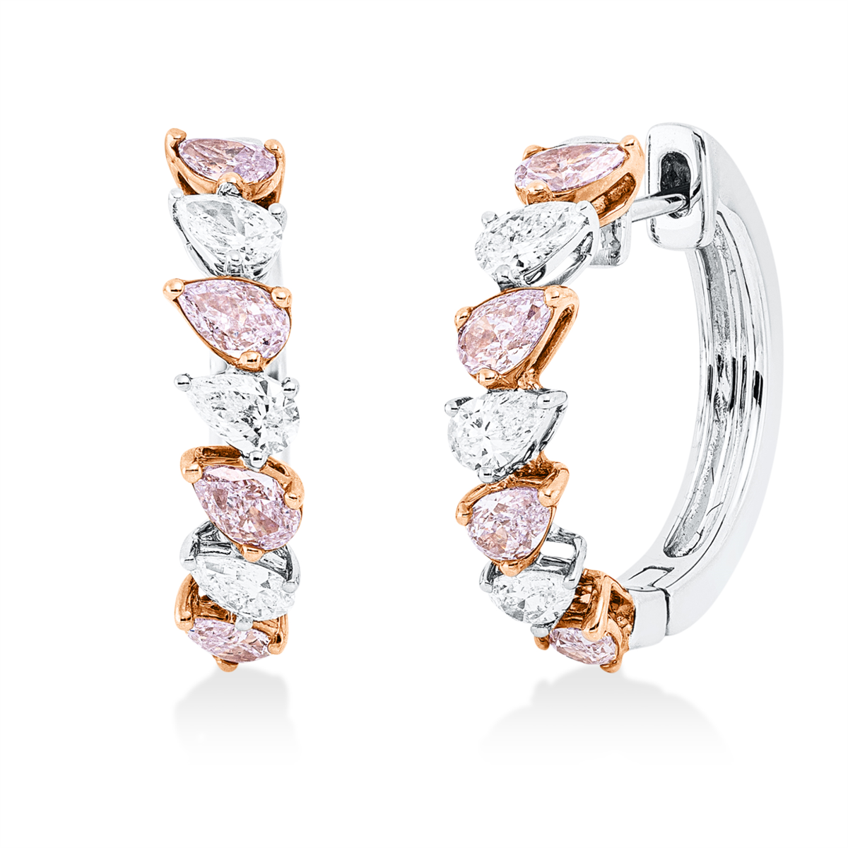 Creolen 18 kt WG+RG, 6 Tropfen 0,72 ct, TW-vsi/si, 8 Tropfen 1,17 ct, pink, H:20,0 mm, B:20,3 mm, S:4,5 mm
