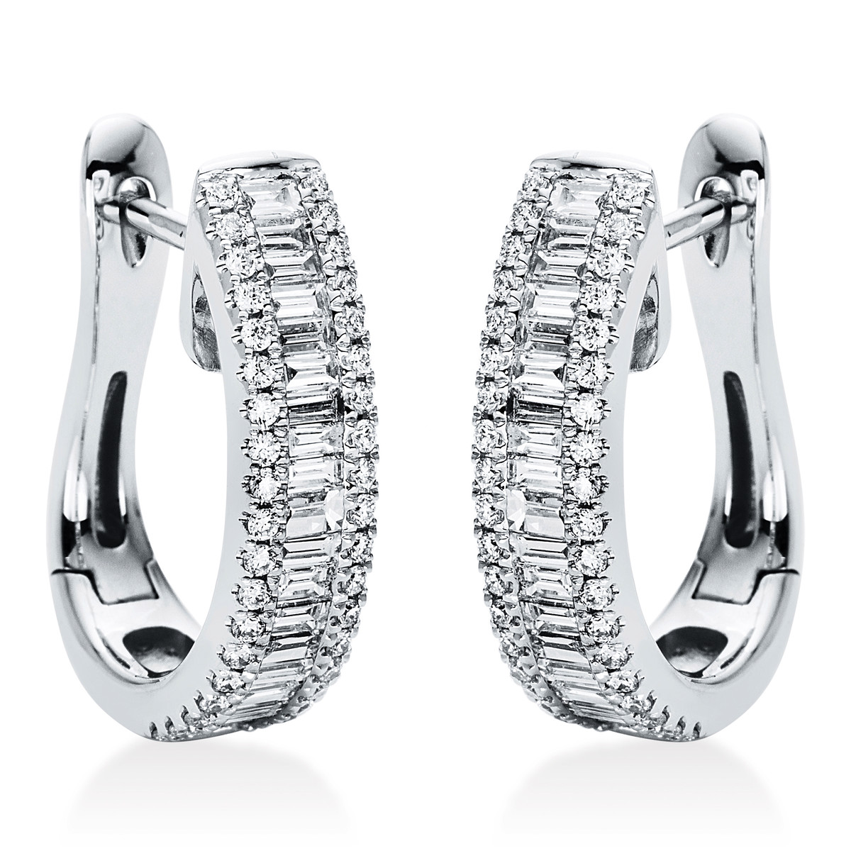 Creolen 18 kt GG, 29 Baguette 0,88 ct, TW-si, 76 Brillanten 0,39 ct, TW-si