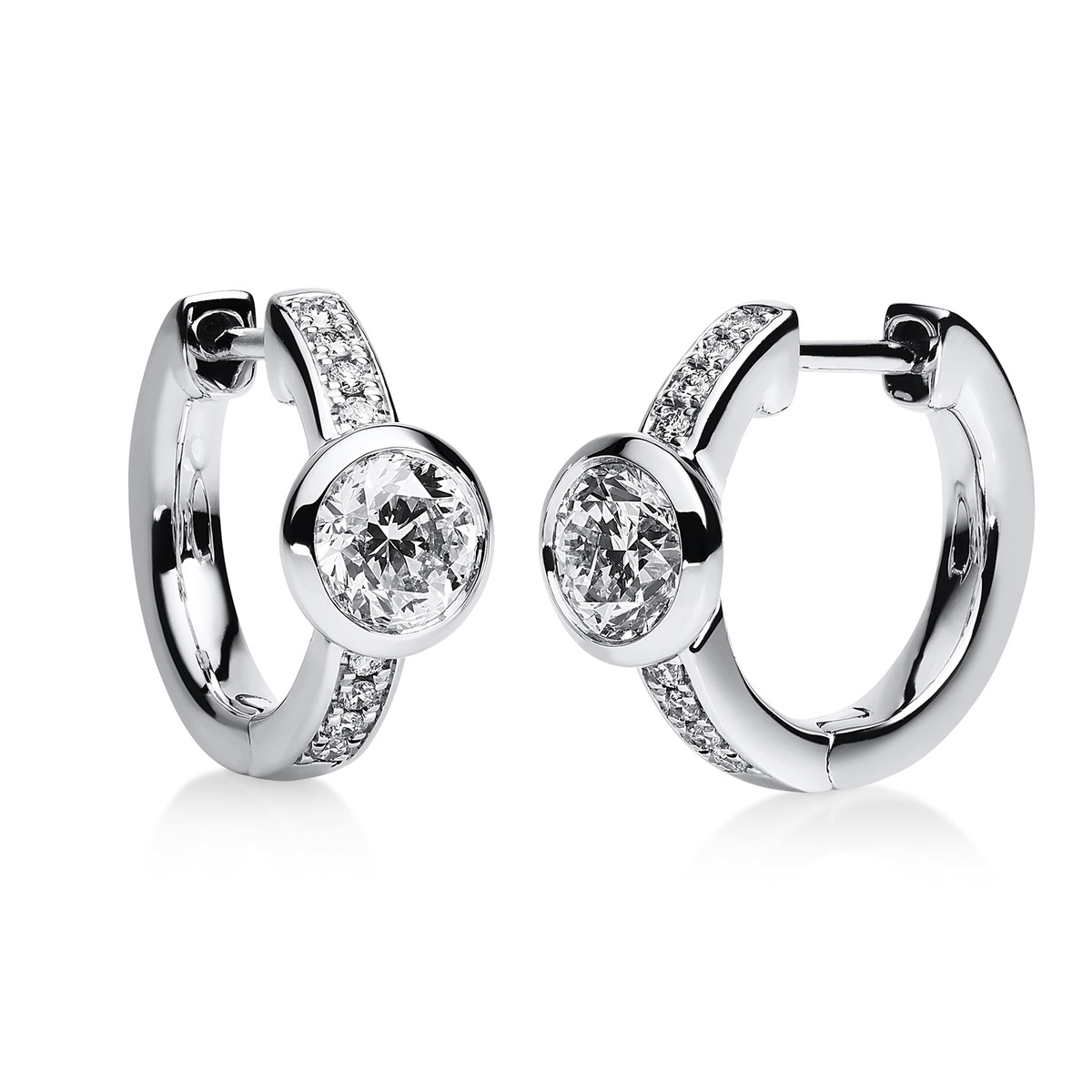 Creolen Zarge 14 kt WG, 16 Brillanten 0,10 ct, TW-si, 2 Brillanten 1,00 ct, TW-si, H:19,0 mm, B:11,0 mm, S:1,7 mm