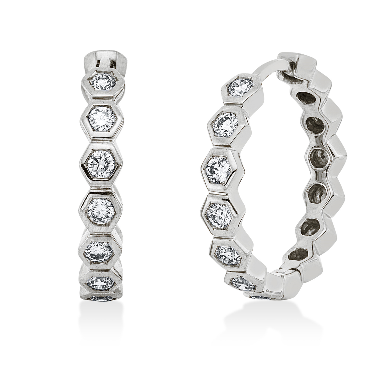 Creolen Zarge 18 kt GG, 14 Brillanten 0,45 ct, TW-si, H:18,0 mm, B:18,7 mm, S:3,2 mm